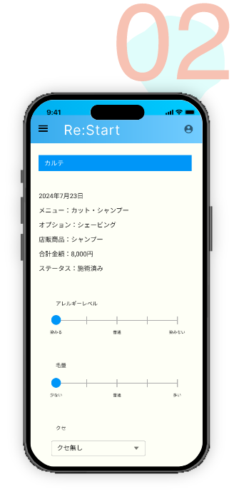 カルテ内容やお客様情報・売上管理をスマホ1台で一括管理できるので情報の確認漏れやダブルブッキング等のミスをなくすことができます。