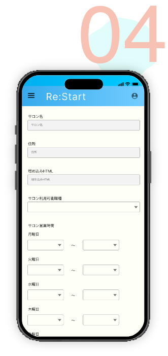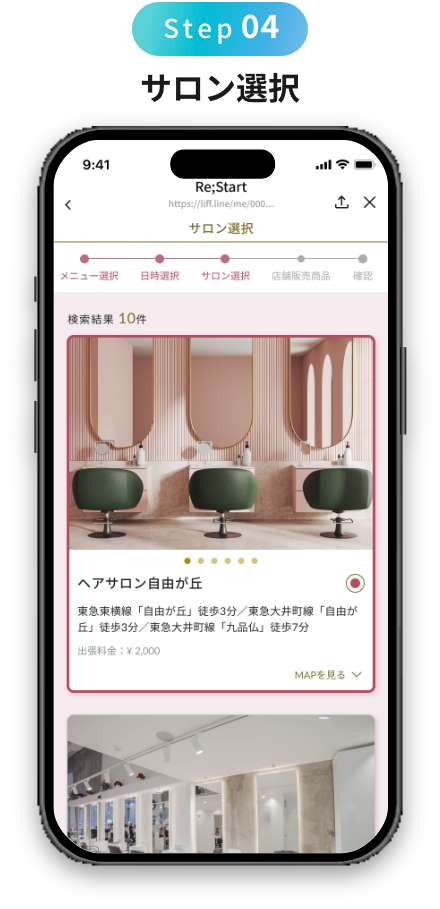 - 利用されているシェアサロン情報(住所等)を入力頂ければ予約時にお客様側で複数サロンが表示されます。