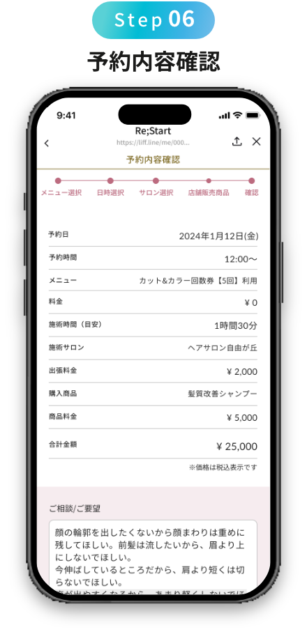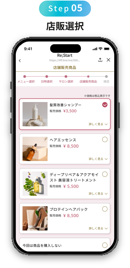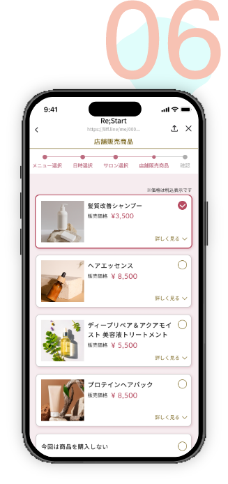 お客様が来店時に購入したい店販商品を事前にLINEで購入予約ができる!